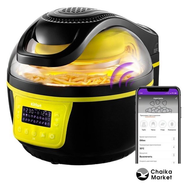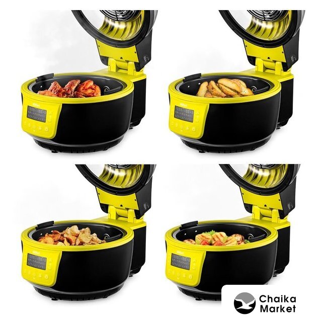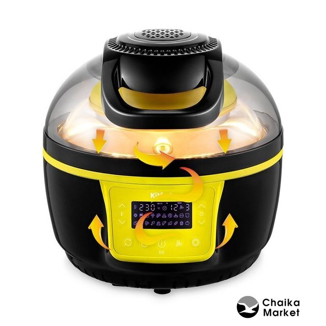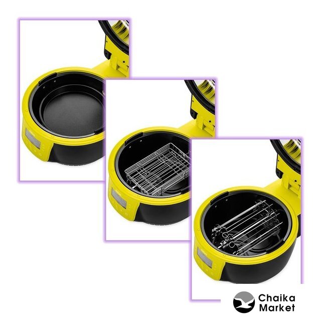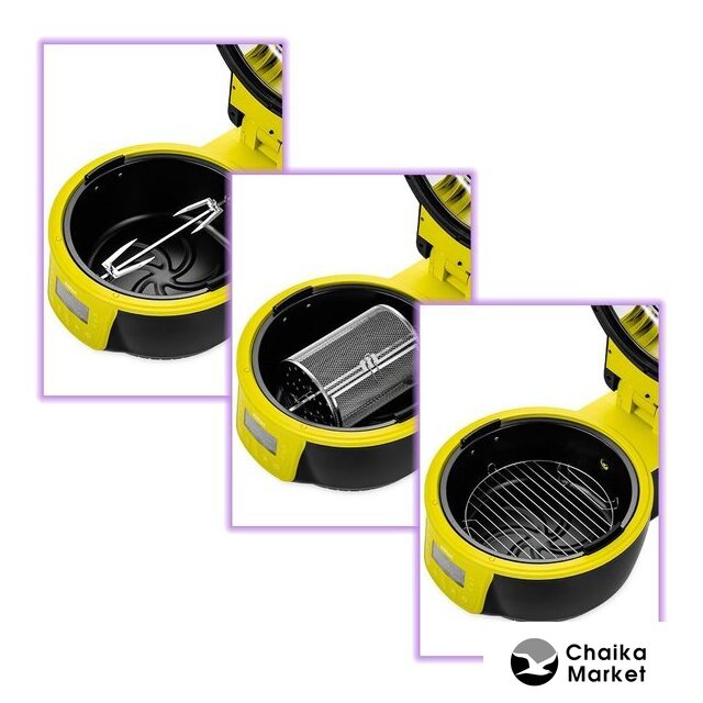 Комплект поставки | - аэрогриль- вертел- держатель вертела- противень- решетка- решетка для стейков- вращающаяся корзина- шампуры- щипцы- фильтр |