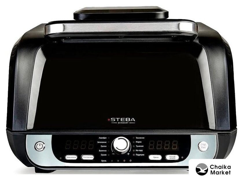 Комплект поставки | Чаша-сковорода с антипригарным покрытием и рельефной поверхностью для жарки, выпечки, тушения и приготовления соусов.Решетка для гриля с антипригарным покрытием.Корзина конвекционная для аэрофритюра, запекания, сушки и приготовления на пару.Решетка-гриль из хромированной стали.Щипцы кухонные для переворачивания и подачи продуктов.Прихватки силиконовые, термостойкие.Щёточка для очисткиКрышка с ручкой из нержавеющей стали. |