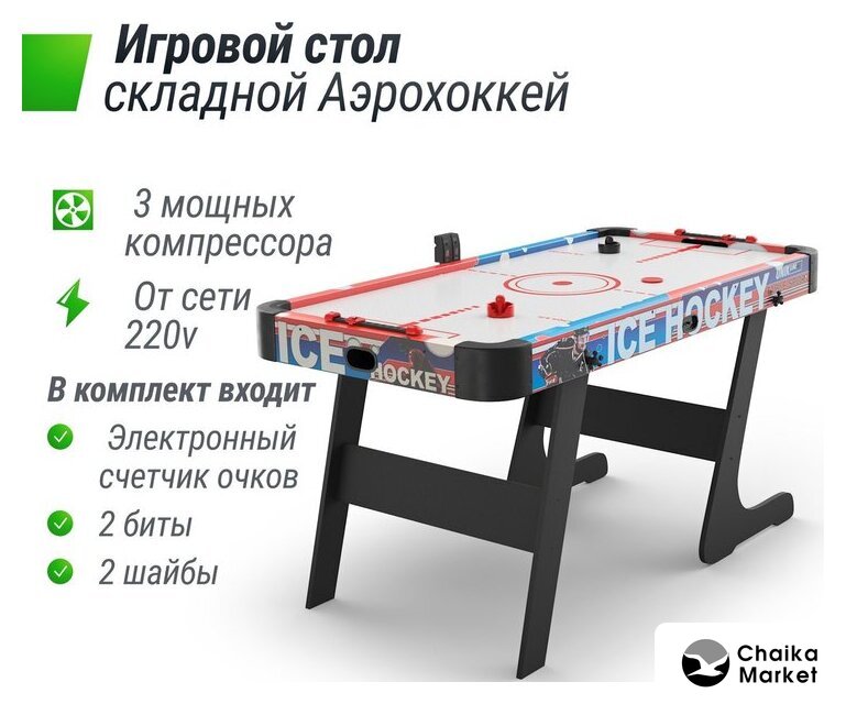 аэрохоккей, 2 игрока, детский, электронный счетчик, корпус МДФ, 182.6x91.2 см