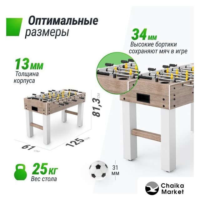 настольный футбол, 2-4 игрока, любительский, механический счетчик, корпус МДФ, 121x61 см