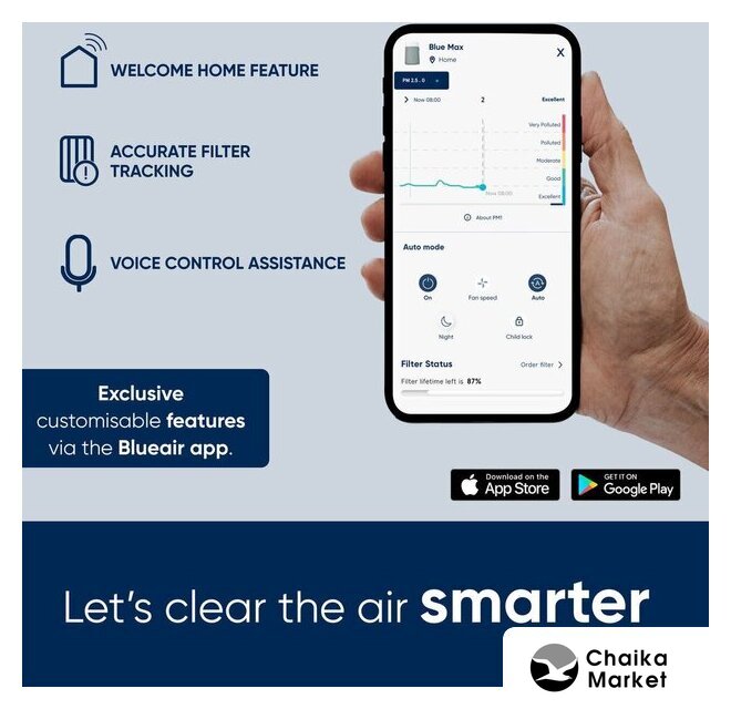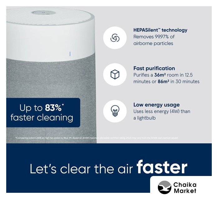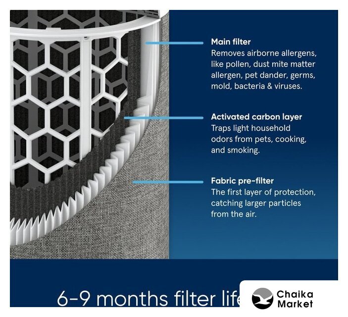 очиститель, 3-ступ. фильтр, для помещения до 135 м², Amazon Alexa/Google Home/фирменное приложение, шум 15 дБ, питание: сеть, цвет темно-серый
