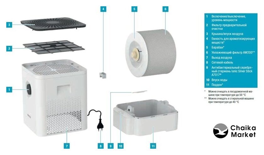 | Производительность увлажнения | 350 мл/ч |
