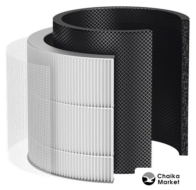 очиститель, 3-ступ. фильтр, для помещения до 20 м², шум 0 дБ, питание: сеть, цвет черный/белый