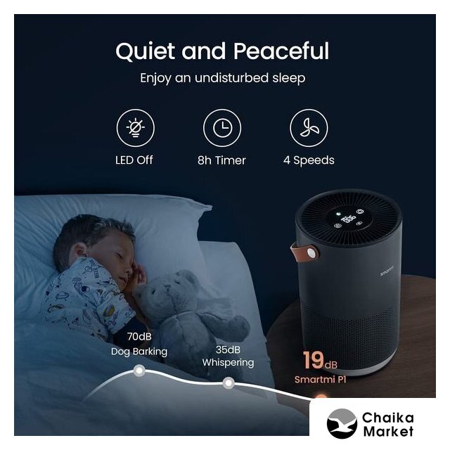 очиститель, 3-ступ. фильтр, для помещения до 20 м², фирменное приложение, шум 32 дБ, питание: сеть, цвет белый