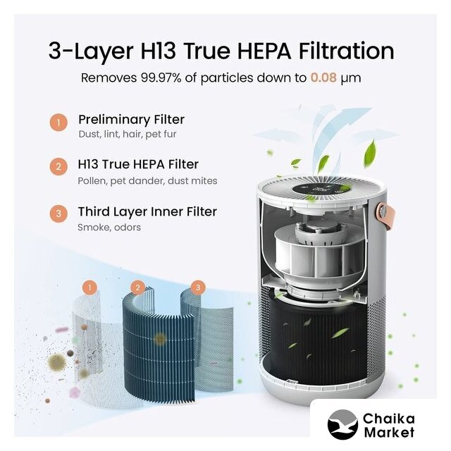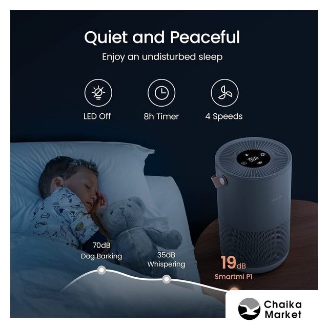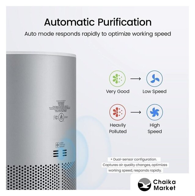 очиститель, 5-ступ. фильтр, для помещения до 48 м², фирменное приложение, шум 17 дБ, питание: сеть, цвет белый