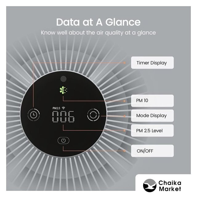 | Индикация | скорости работы вентилятора, качества воздуха |