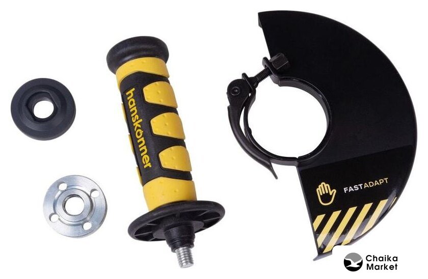 Комплект поставки | - Быстросъемный защитный кожух - Боковая рукоятка - Разметочный карандаш с твердосплавным наконечником - Винт с гайкой - Фланцевый ключ- Инструкция по эксплуатации |