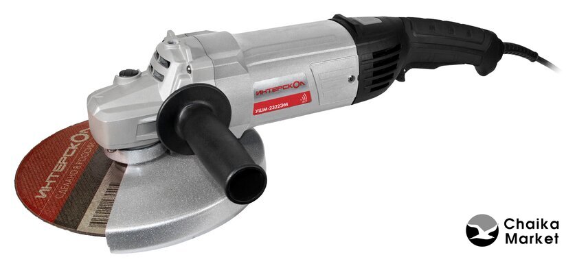 диаметр диска: 230 мм, 2000 Вт, 6600 об/мин холостого хода, питание: сеть, 4.9 кг