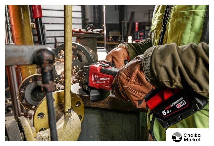 диаметр шлифкруга: 125 мм, 3500–8500 об/мин холостого хода, без АКБ, 2.7 кг