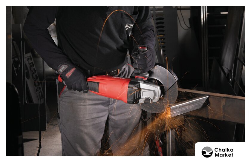 диаметр диска: 230 мм, 2400 Вт, 6600 об/мин холостого хода, питание: сеть, 6.5 кг