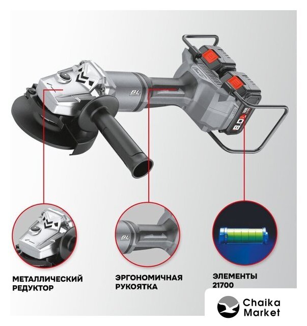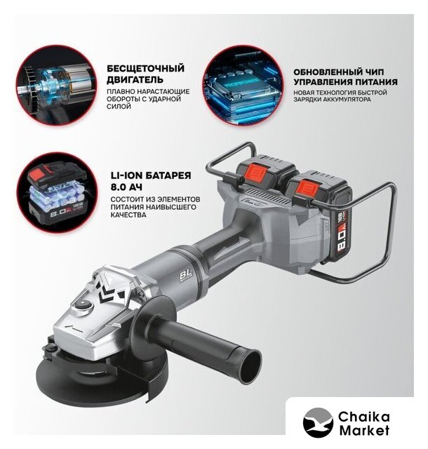 диаметр шлифкруга: 230 мм, 6000 об/мин холостого хода, без АКБ, 5.2 кг