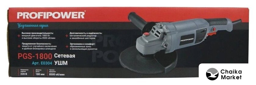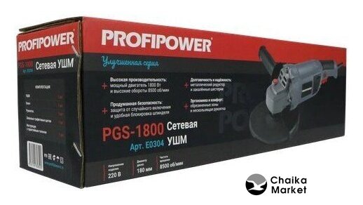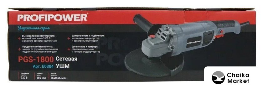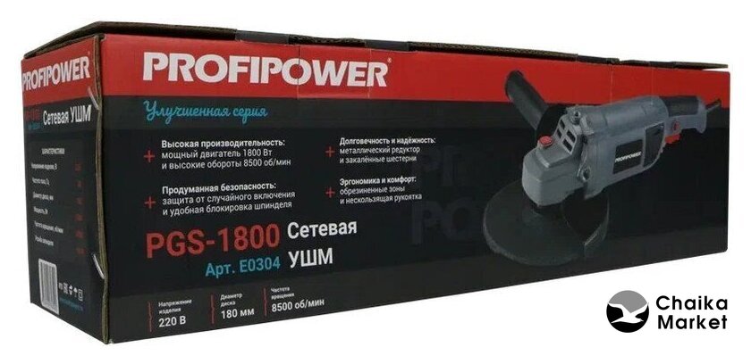 диаметр диска: 180 мм, 1300 Вт, 8000 об/мин холостого хода, питание: сеть, 4.8 кг