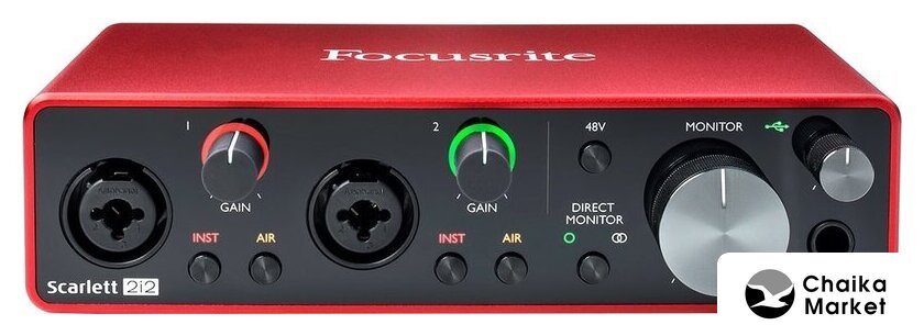 аудиоинтерфейс, настольное исполнение, подключение по USB Type-A, прямой мониторинг