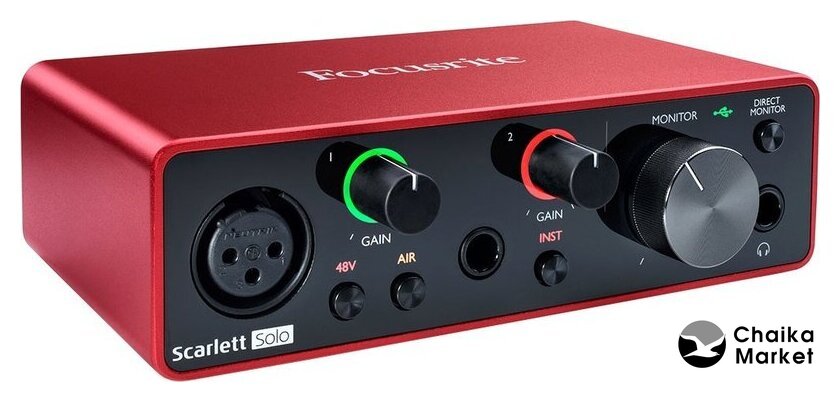 Комплект поставки | - кабель USB Type-C - USB Type-A- Ableton Live Lite- Pro Tools First Focusrite Creative Pack- набор плагинов (XLN Audio Addictive Keys, Softube Time and Tone Bundle, Focusrite Red Plug-in Suite, Focusrite Plug-in Collective)- 3 месяца бесплатной подписки на Splice Sounds- документация |