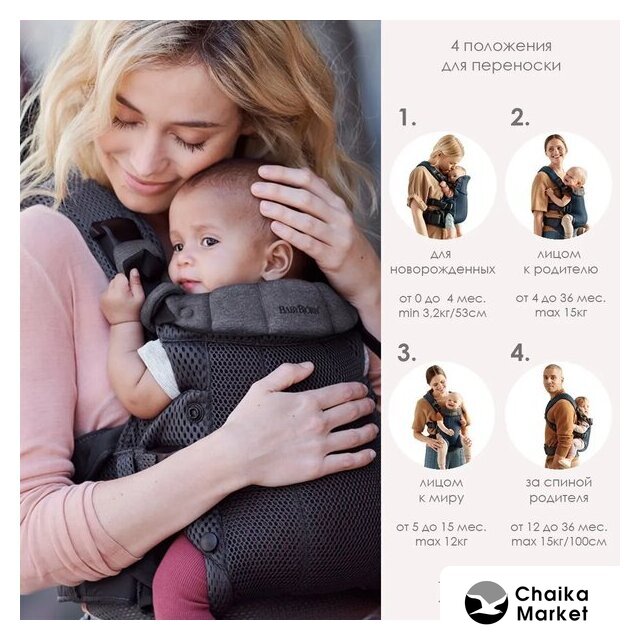 Положение ребенка | лицом к родителю, лицом от родителя, за спиной, сбоку |