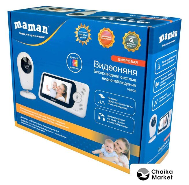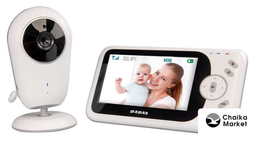видеоняня цифровая, обратная связь, размер: 4.3 '', индикация: заряд аккумулятора/выход из радиуса действия/температура, музыка