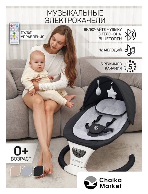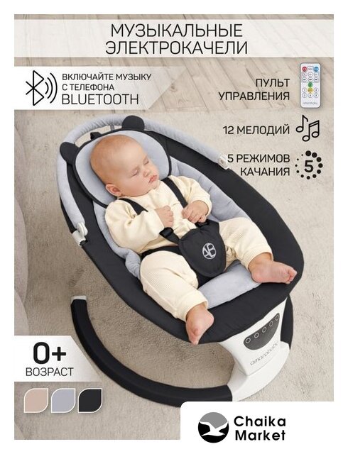 качалка, для детей до 1 года, электронное укачивание, музыкальный блок