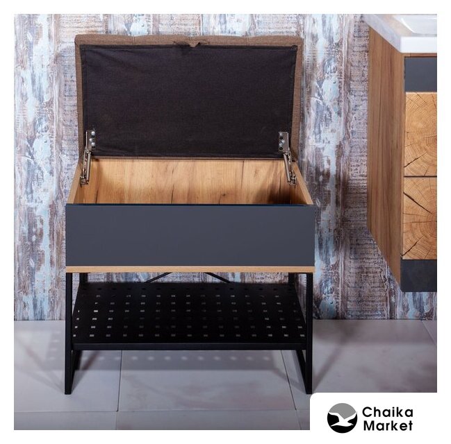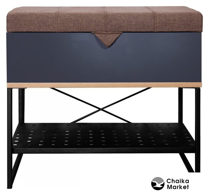 металл, обивка: искусственная кожа, полка для обуви, 80x30x49 см, цвет: коричневый/серебристый/черный