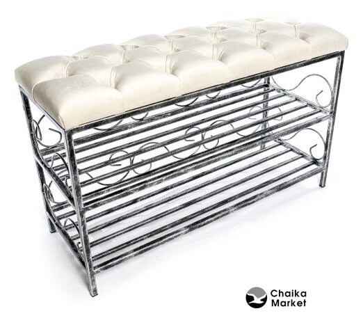 металл, обивка: ткань, полка для обуви, 80x30x49 см, цвет: бежевый/белый
