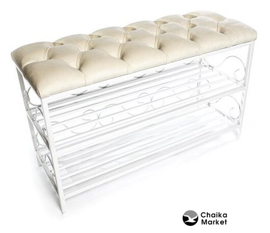 металл, обивка: искусственная кожа, полка для обуви, 80x30x49 см, цвет: белый/серебристый/черный