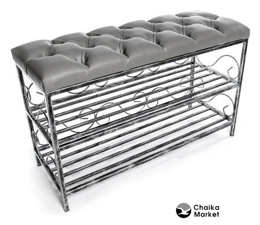 металл, обивка: искусственная кожа, полка для обуви, 80x30x49 см, цвет: белый/серебристый/черный