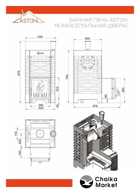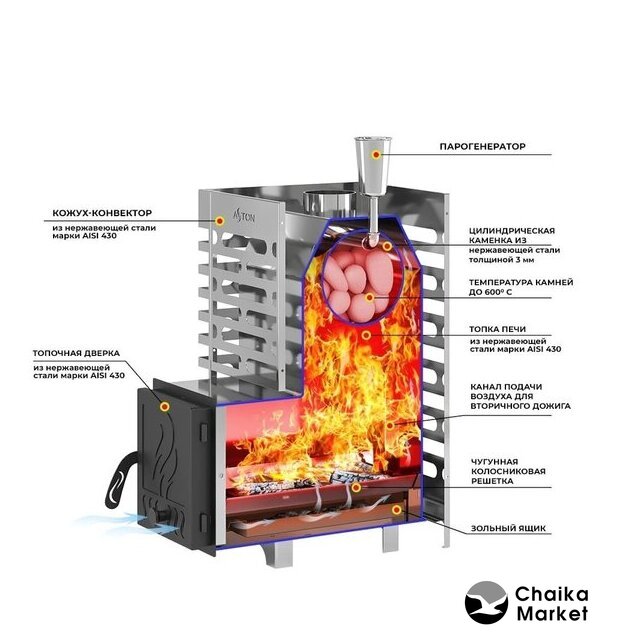 дровяная, 10 кВт, парилка 10-24 м³, материал: сталь