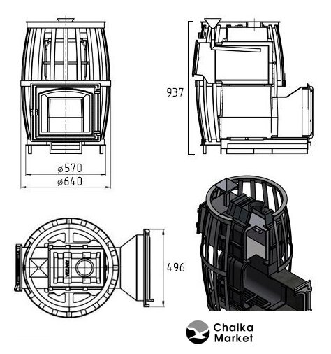 дровяная, парилка 12-24 м³, материал: чугун