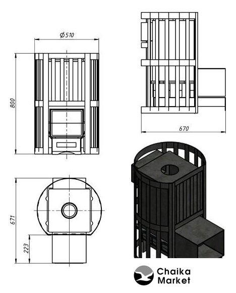 дровяная, парилка 8-16 м³, материал: нержавеющая сталь/чугун