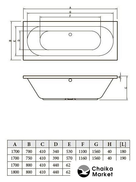 прямая, акрил, объем: 165 л