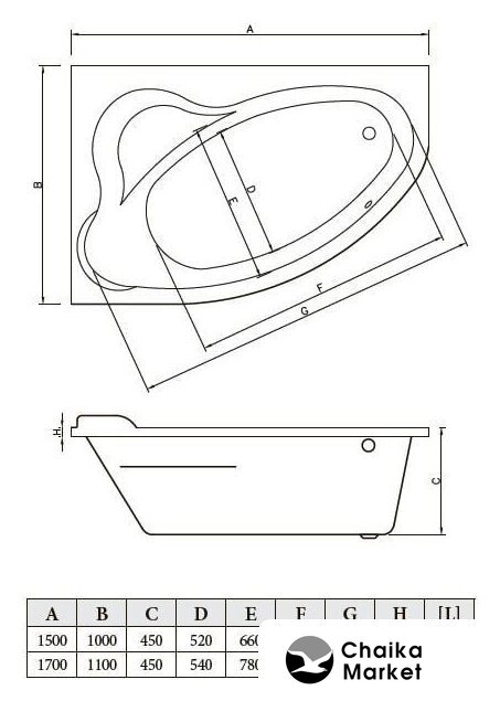 прямая, акрил, объем: 180 л