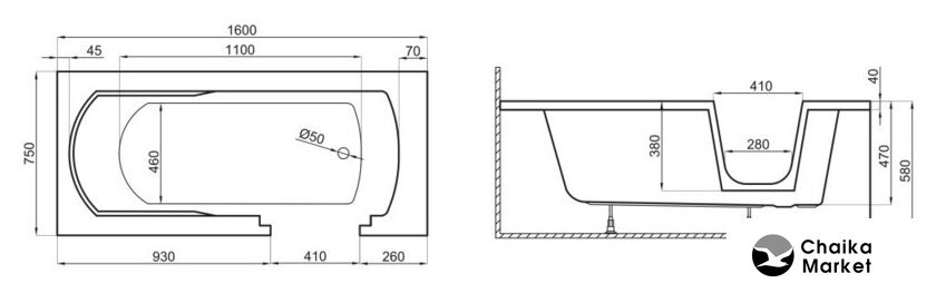 гидромассажная, угловая асимметричная, акрил, объем: 320 л