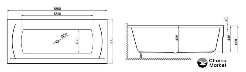 прямая, акрил, объем: 152 л