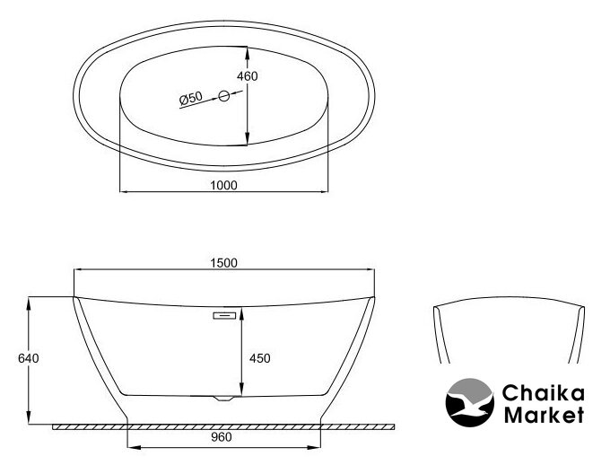 овальная, акрил, объем: 210 л