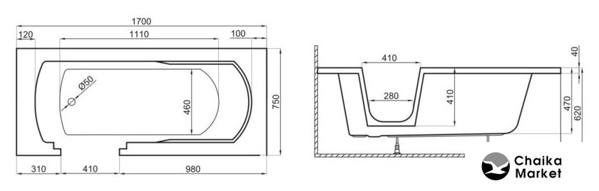 Глубина ванны | 47 см |