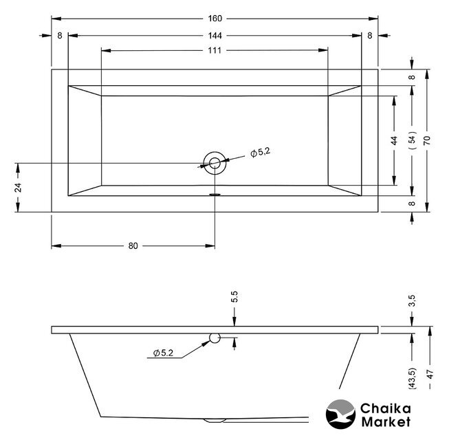 160x70 см, объём: 155 л
