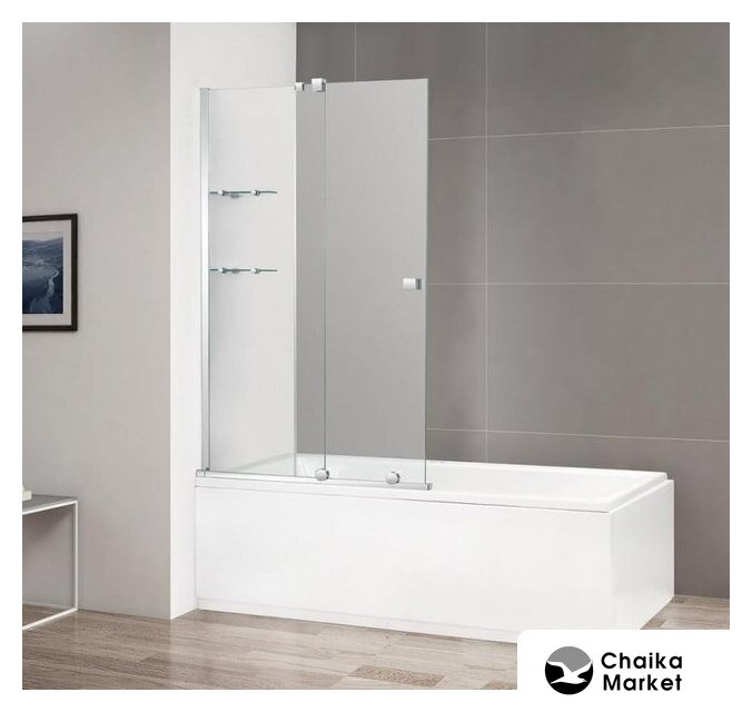 левосторонняя (L), материал шторки закаленное стекло, раздвижные двери, 100х150 см, прозрачный