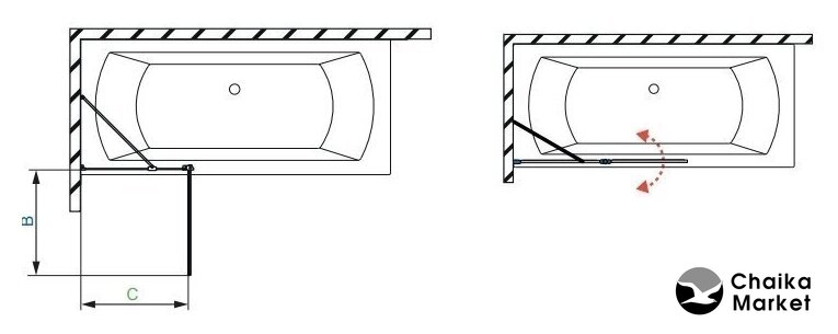 левосторонняя (L), материал шторки закаленное стекло, раздвижные двери, 100х150 см, прозрачный
