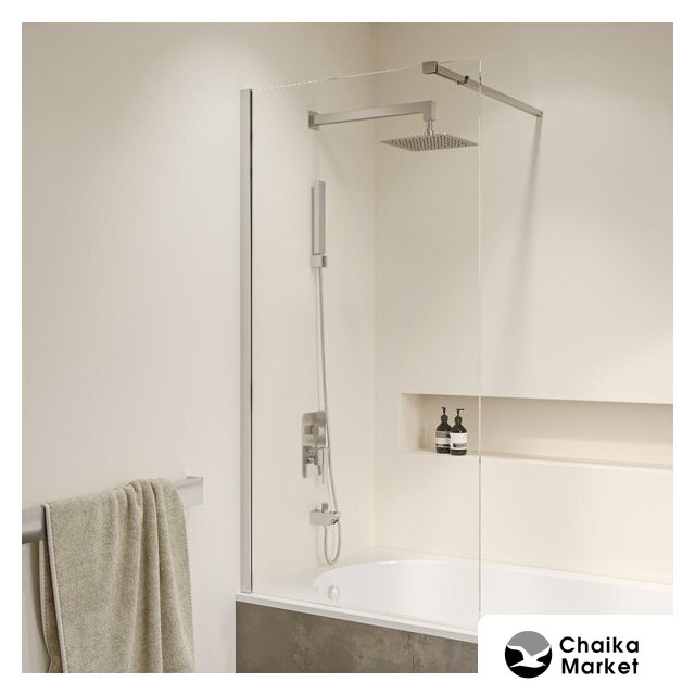 материал шторки закаленное стекло, стационарные двери, 172х150 см, прозрачный/матовый