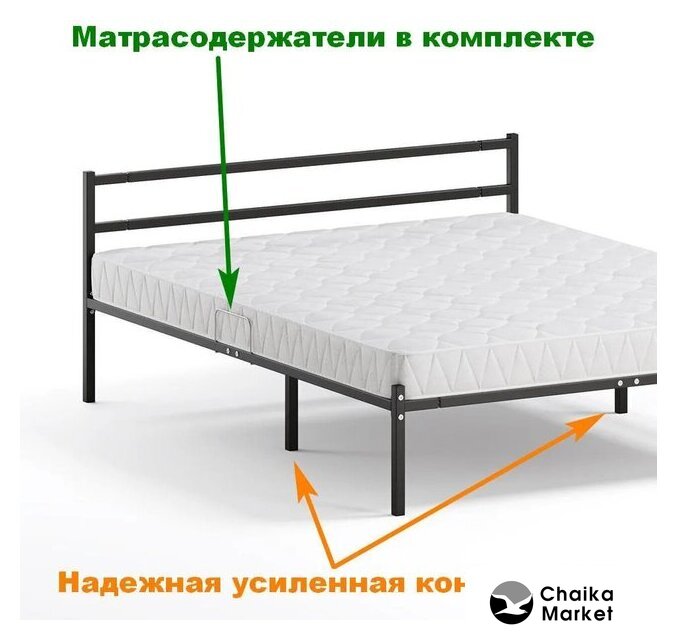 классическая, 90x200 см, изголовье металл, основание ортопедическое