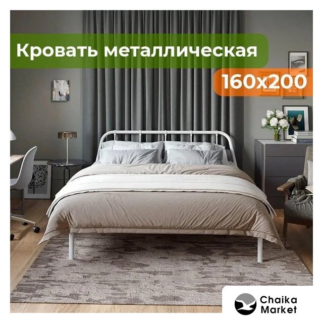 классическая, 140x200 см, изголовье металл, основание ортопедическое