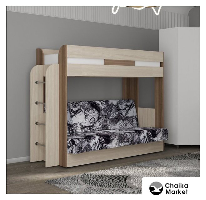 двухъярусная, 90x200 см, изголовье дерево, основание ортопедическое