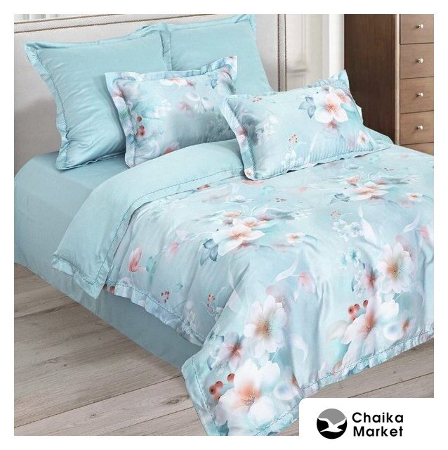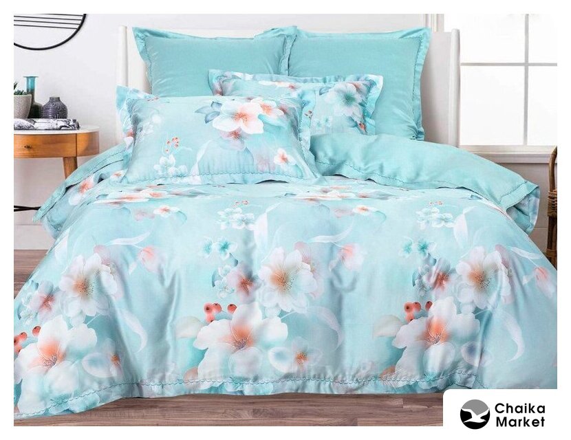семейный, тенсель, пододеяльник 145x215 см, простыня 220x240 см, наволочка 50x70 см, мятный