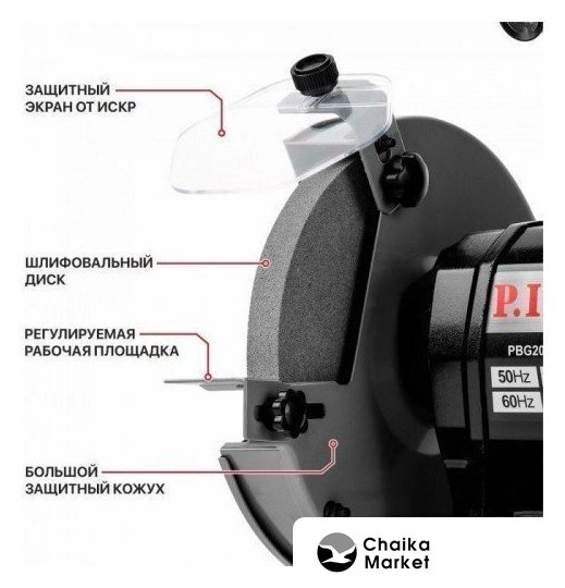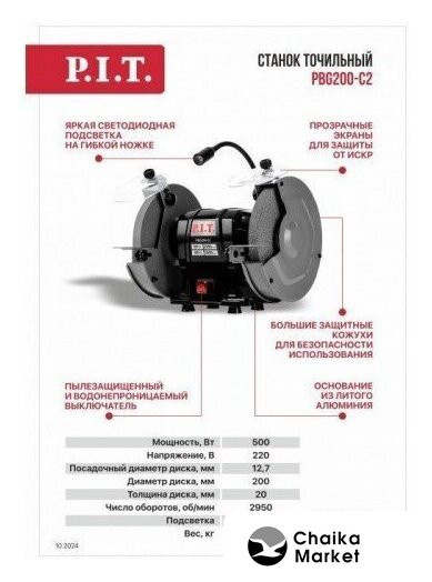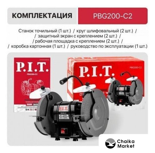 | Комплект поставки | - Станок точильный, - круг шлифовальный (2 шт), - защитный экран с креплением (2 шт),- рабочая площадка с креплением (2 шт), - коробка, - инструкция по эксплуатации. |