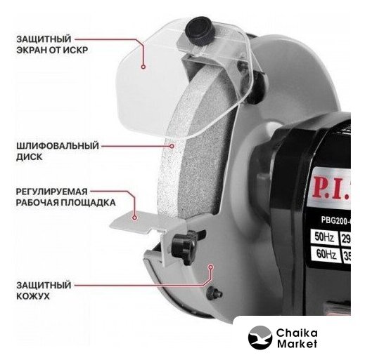 | Комплект поставки | - Станок точильный, - круг шлифовальный (2 шт.), - защитный экран с креплением (2 шт.),- рабочая площадка с креплением (2 шт.), - коробка, - переходные втулки (2 шт.), - инструкция по эксплуатации |