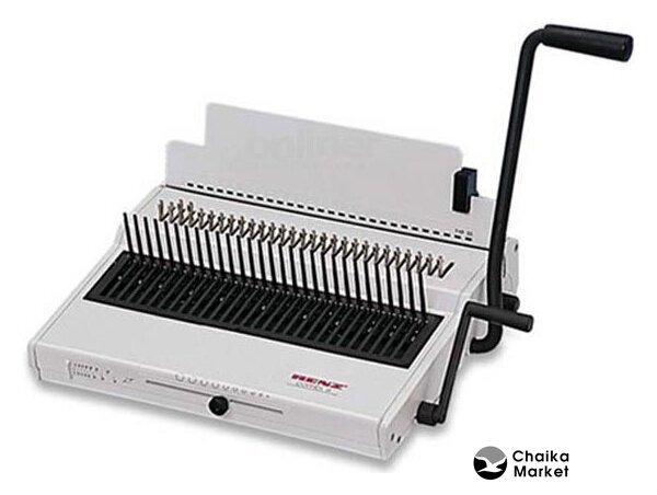 пружинный механический, пластиковая пружина, толщина переплета: 500 листов, одновременная перфорация 25 листов, шаг перфорации: 9:16, вертикальная обработка, металлический корпус