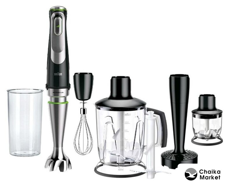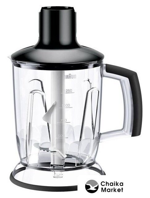Комплектация | насадка блендер-измельчитель 1250 мл, мерный стакан 600 мл, насадка для приготовления пюре, насадка-венчик для взбивания, насадка-измельчитель 350 мл, нож для измельчения |