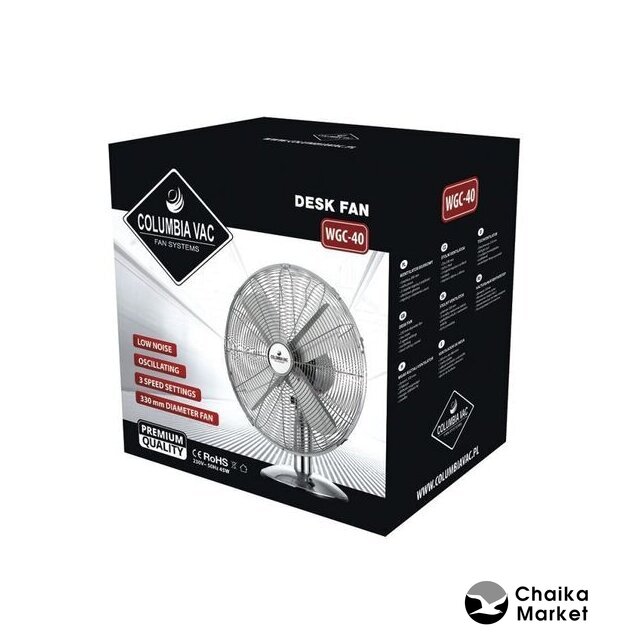 настольный, мощность 50 Вт, 3 скорости, управление механическое, лопасти 40 см, питание: сеть