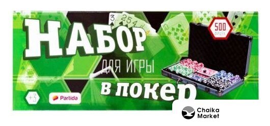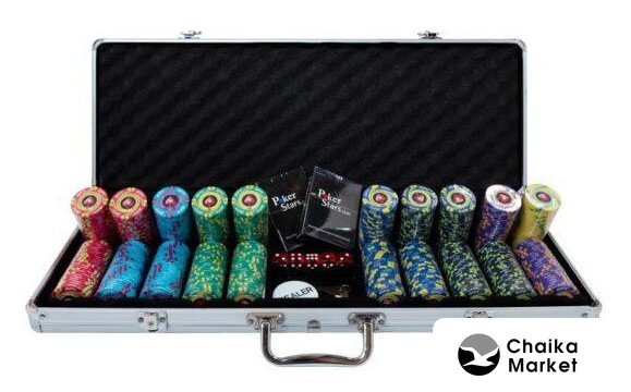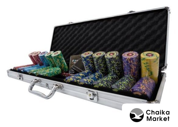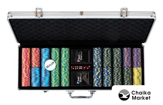 | Комплектация | набор для покера из 500 фишек, игральные карты, 5 игральных кубиков, алюминиевый кейс |