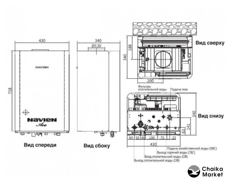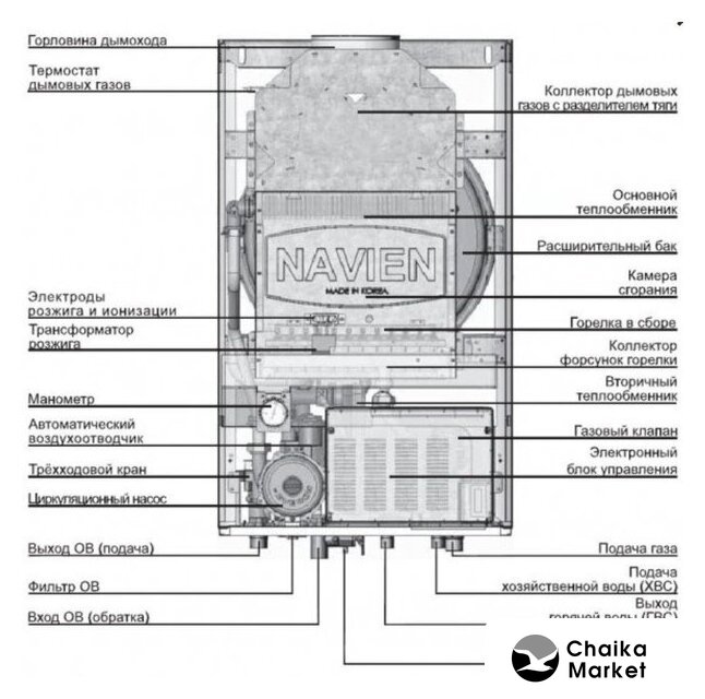 газовый конвекционный (природный газ/сжиженный газ), двухконтурный, настенный, закрытая камера сгорания