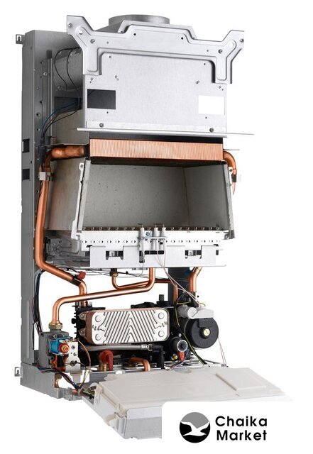 газовый конденсационный (природный газ), 36.2 кВт, 350 м², двухконтурный, настенный, открытая камера сгорания